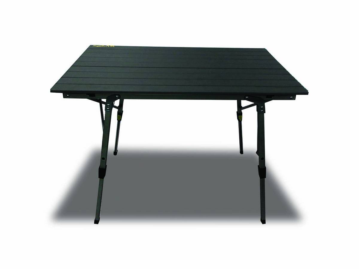 Ein großartiger, leichter Tisch, welcher bei jeden Bodengegebenheiten eingesetzt werden kann. Der Tisch wird aus schwarz anodisiertem Aluminium hergestellt. Alle vier Beine sind verstellbar, was es ermöglicht, den Tisch an jeglichen Angelstellen gerade aufzustellen. Das Oberteil des Tisches kann von den Beinen abgetrennt werden und es lässt sich dann zusammenfalten. Die Beine können flach angeklappt werden. Querstreben an den Beinen sorgen für zusätzliche Stabilität. Geliefert mit gratis Transporttasche. Wichtig: Die Abbildung dient nur Illustrationswecken. Das Endprodukt wird über einen schwarz anodisierten Rahmen verfügen.