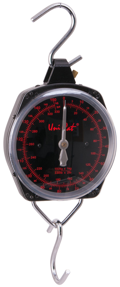Gerade für Großfische braucht man eine zuverlässige Waage, die einem auch noch die schweren Gewichte richtig wiedergibt. Oben an der Waage befindet sich ein Edelstahlhaken, um eine Wiegestange oder Haken einhängen zu können Ein großes Einstellrad dient dazu, die Waage für den Wiegevorgang tarieren zu können. Unten befindet sich ein großzügig geformter und sehr stabiler Edelstahlhaken um den Wiegesack einhängen zu können.• Anzeige in lbs oder Kg